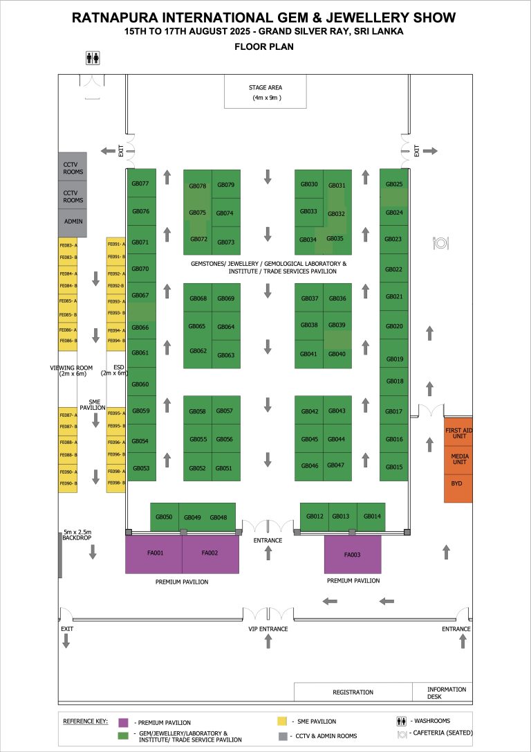 Navigate Gem City Ratnapura 2025 with ease. Our detailed floor plan helps you find exhibitor stalls, networking zones, demo areas, and key event spaces—ensuring you don’t miss a single highlight.